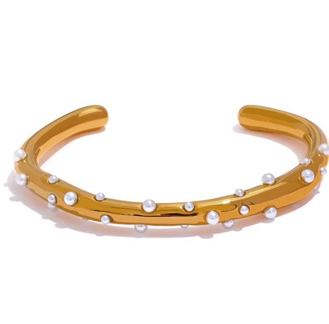 18K Gold Plated•Natural Pearl . Please avoid contact with chlorine, Perfume or any chemicals