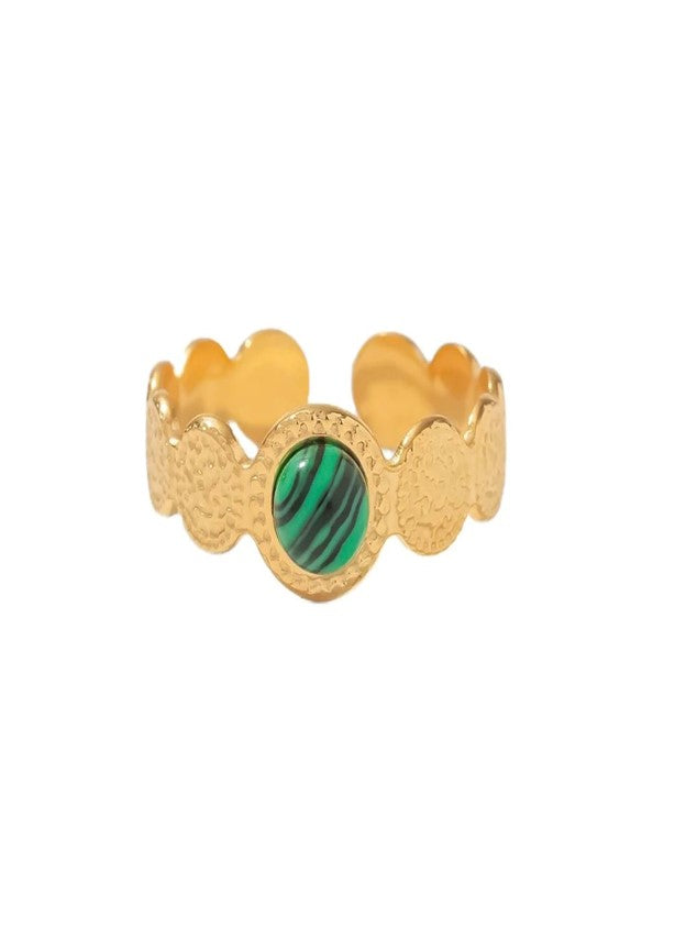 18K Gold Plated Malachite Stone Adjustable Rings  • Please avoid contact with chlorine, parfume or any...