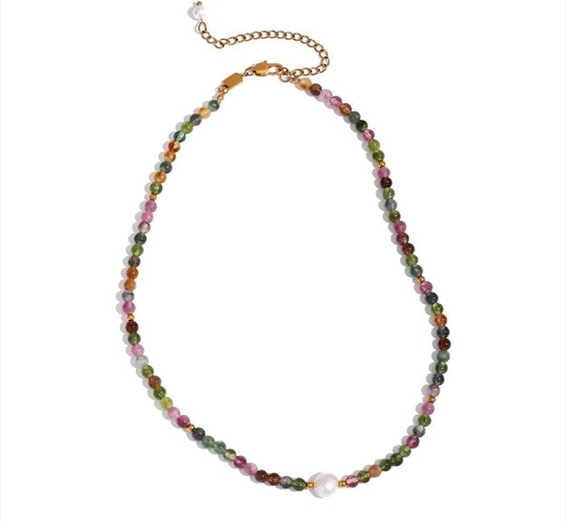 18K Gold Plated•Natural Tourmaline Stone Pearl .Please avoid contact with chlorine, Perfume or any chemicals