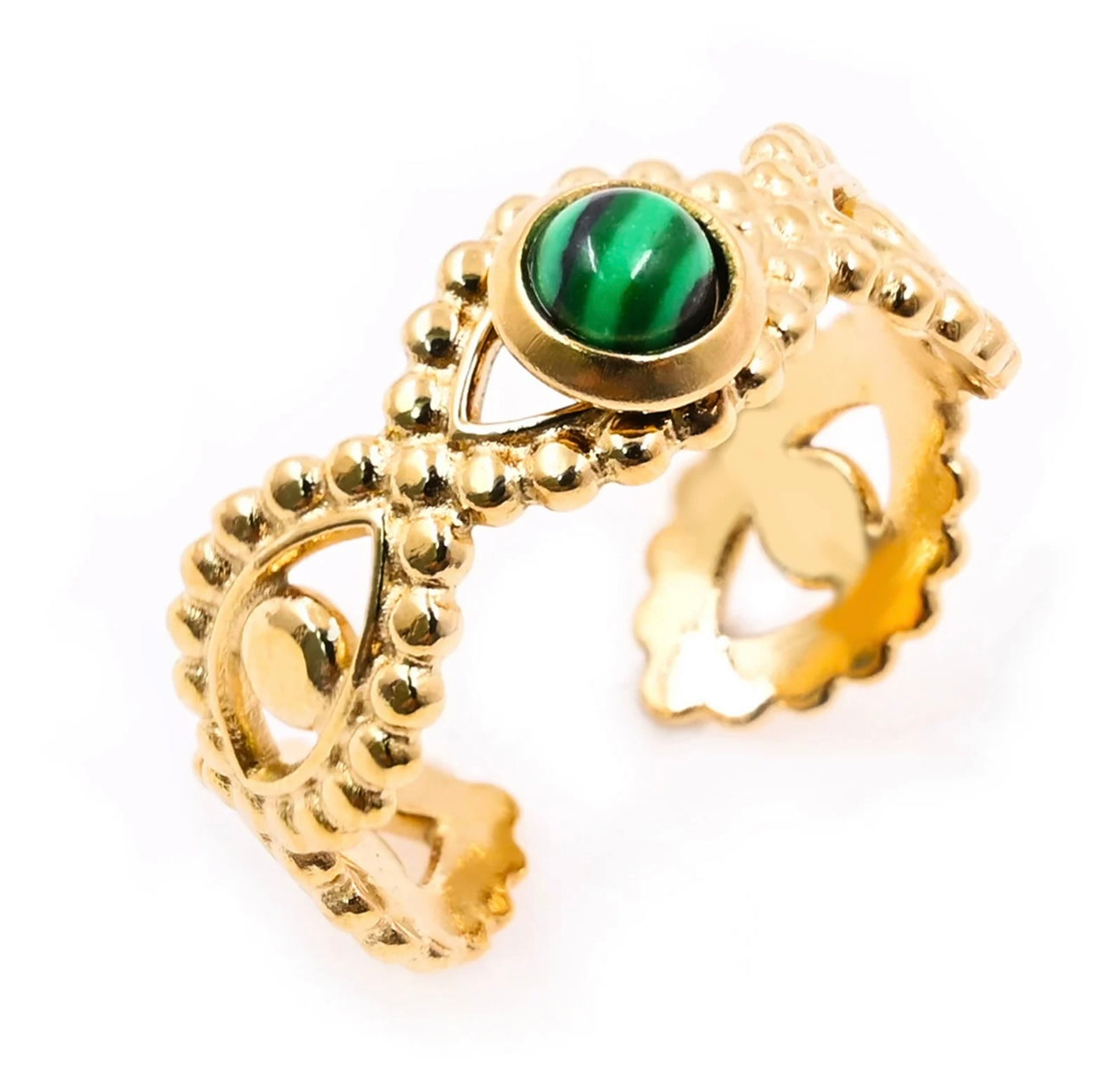 18K Gold Plated Malachite Stone Adjustable Rings  • Please avoid contact with chlorine, parfume or any...