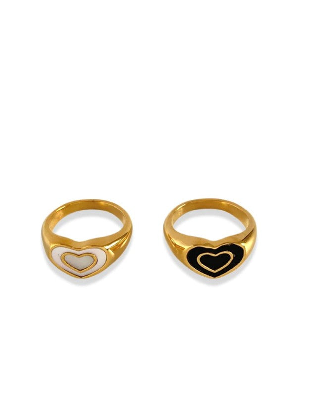 Enamel White. Black Double Heart Rings 18K Gold Plated  • Please avoid contact with chlorine, parfume...