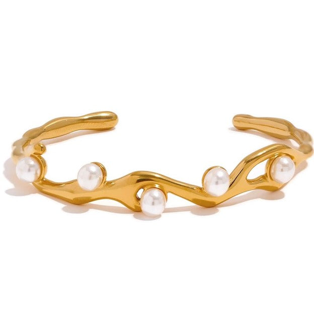 18K Gold Plated•Natural Pearl . Please avoid contact with chlorine, Perfume or any chemicals